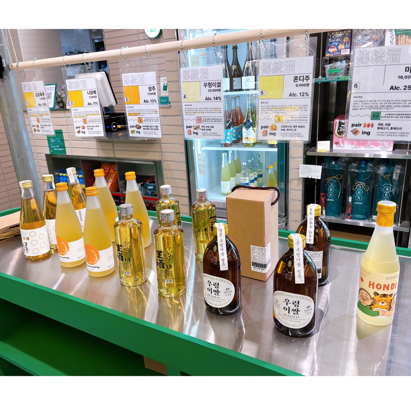 우리 술이 가장 먼저 눈에 들어왔고 그 반대편에는 각종 와인이 진열되어 있었습니다. 레드와인, 화이트 와인, 내추럴 와인, 컵와인이 있습니다. 와인은 잘 몰라서 넘어가겠습니다.