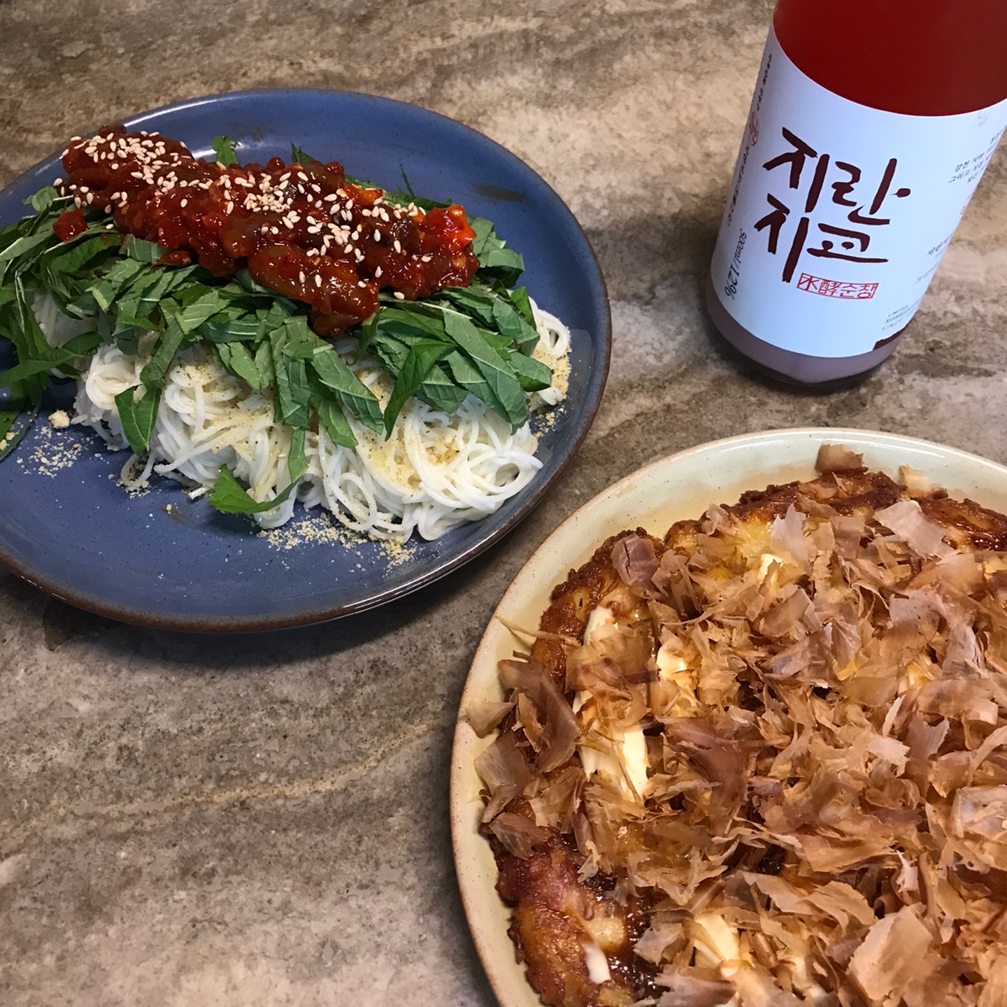 낯선 페어링에 도전하다! [낙지젓 카펠리니], [오코노미야키], [지란지교 무화과 탁주]
