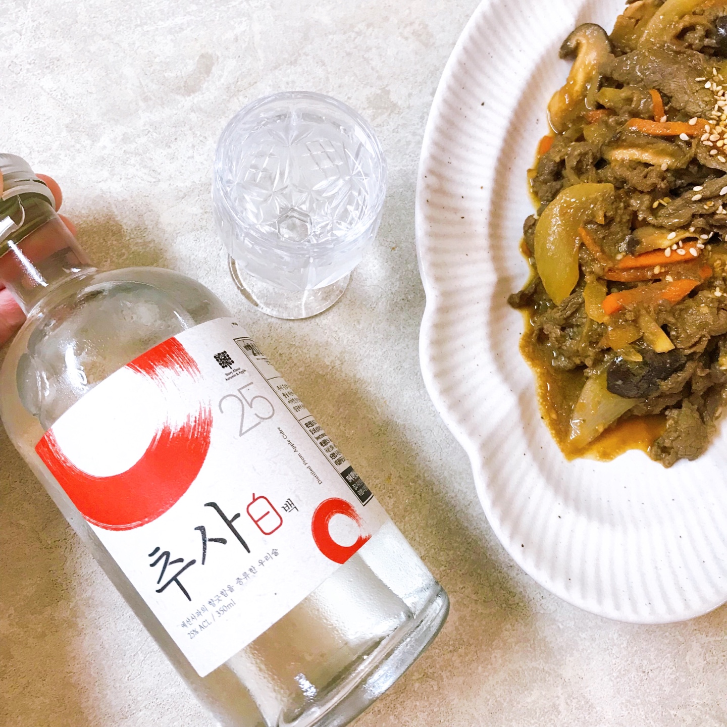 추사 백 25도를 잔에 따라 눈을 감고 향을 맡아보면 누구라도 진한 사과향을 맡을 수 있습니다. 공기와 함께 후루룩 한 입 머금고 천천히 맛을 음미하며 마셔보면 끝에 또 한 번 사과향이 상큼하게 나는 것을 느낄 수 있습니다. 사과로 시작해서 사과로 끝나는 술입니다. 따끈한 흰쌀 밥에 불고기 그리고 사과 증류주! 정말 두 말하면 잔소리 세 말하면 입 아픕니다. 흔하게 해먹는 음식이지만 예쁜 그릇에 담아 예쁜 잔에 마시면 고급 전통 주점에 와 있는 기분마저 듭니다. 집에서도 예쁘게 드셔보세요!