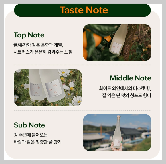 감탄주는 부여 객제양조장에서 유기농 부여쌀과 한라봉을 넣어 과하주 형식으로 빚는 술입니다. 출시하자마자 대상을 받은 엄청난 술인데요! 자세한 스펙은 아래 표를 참고해 주세요.