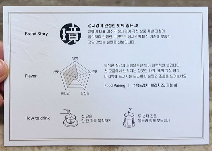 연예계 대표 애주가 성시경이 직접 상품 개발 과정에 참여하여 탄생한 브랜드로 성시경의 미식 기준에 부합한 맛있는 술을 선보인다고 합니다.