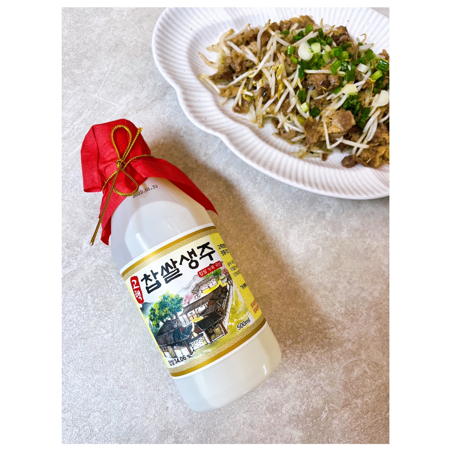[고택 찹쌀 생주]에 초단간 요리 [우삼겹 숙주볶음] 곁들이기