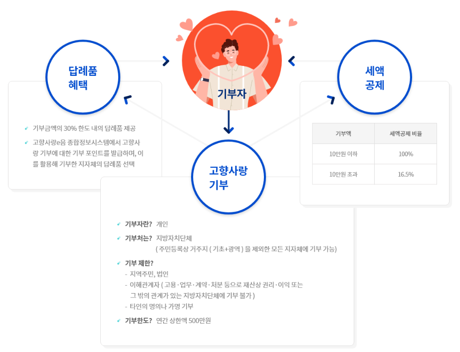기부 한도는 100원부터 최대 500만원(연간)까지 가능합니다. 지역주민, 법인, 이해관계자, 타인의 명의나 가명으로는 기부가 불가합니다.