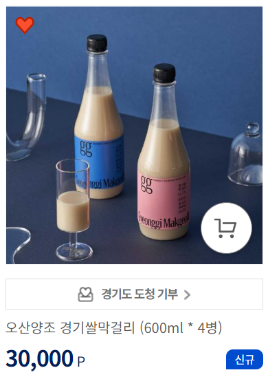 오산양조 경기쌀막걸리는 배송비 포함 4병에 30,000P로 구입할 수 있습니다. 네이버 스마트스토어에서는 3병에 3만 원에 판매 중이니 가격 메리트가 확실히 있네요.