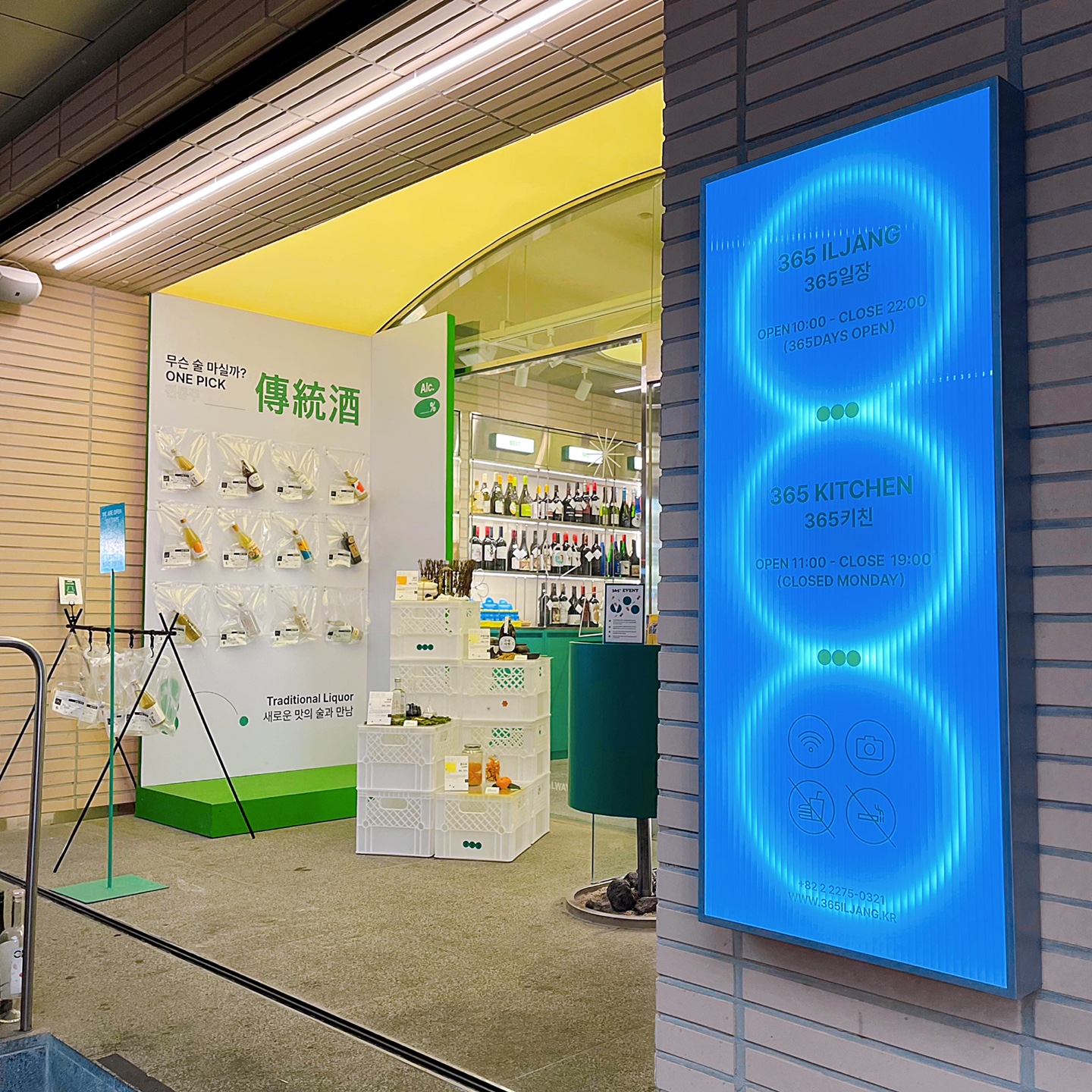 365일장은 광장시장에 위치한 그로서리 스토어로서 2021년 10월 29일에 오픈하였으며 이름처럼 연중무휴이고 오전 10시부터 오후 10시까지 운영됩니다. 이곳에는 광장시장을 기반으로 재해석된 다양한 음식들과 로컬 브랜드 제품, 큐레이션 된 전통주, 와인 등을 판매하고 있습니다. 여기서 구매한 식품은 매장 안쪽에 위치한 365 키친에서 먹을 수 있습니다. 키친에서 판매하는 메뉴들을 간단히 알려드리겠습니다.