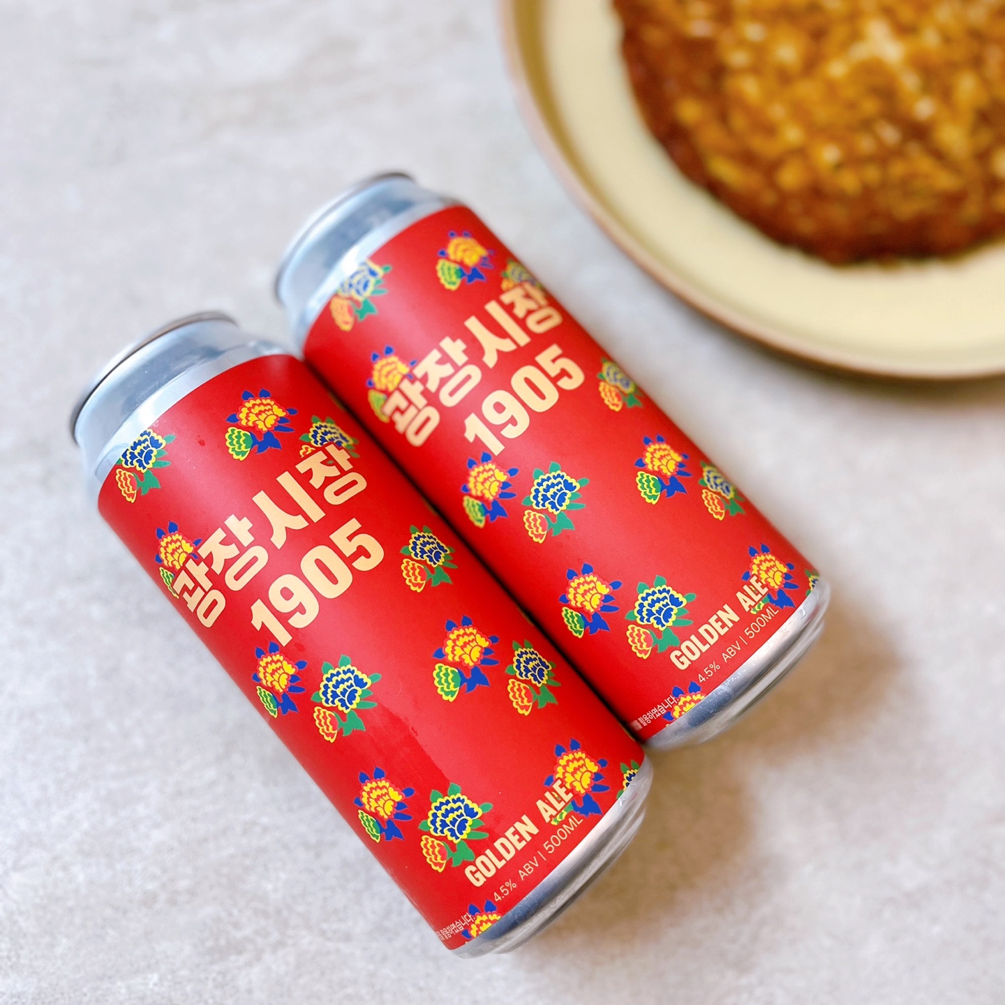 광장시장의 그로서리 스토어 '365일장'의 론칭을 기념하며 '미스터리 브루잉'과 협업으로 만들어낸 수제 맥주가 바로 [광장시장 1905]라는 맥주입니다. 여기서 1905는 광장시장이 오픈한 해를 뜻하며 100년이 넘는 시간 동안 대한민국의 대표적인 시장으로서의 역할을 해 온 광장시장의 역사를 담고자 수제 맥주를 만들게 되었다고 합니다.