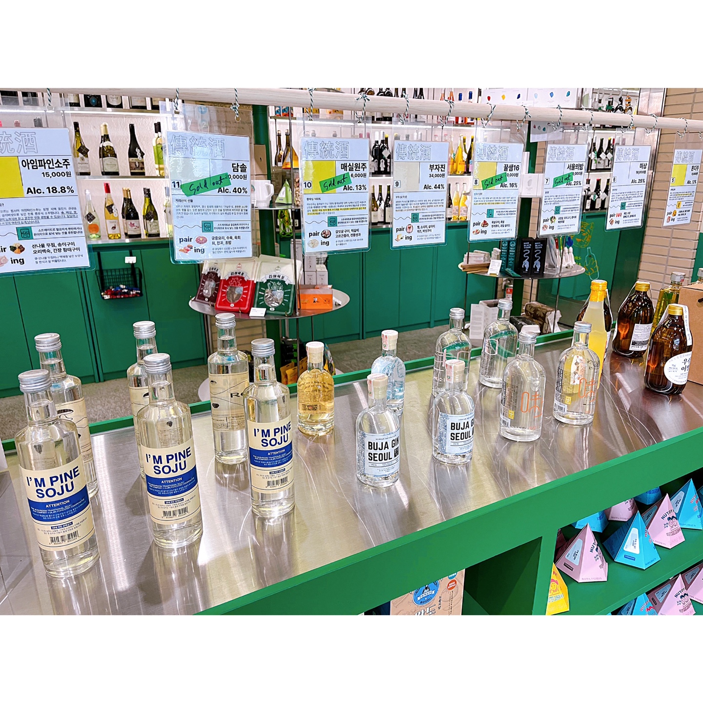 화려한 간판과 조명에 이끌려서 들어가 보았는데 로라의 취향에 너무나도 적격인 곳이었습니다. 전통주, 맥주, 와인 등 다양한 종류의 술들이 너무나 예쁘게 전시되어 있습니다. 물론 구매도 가능하고요. 전통주들이 가장 입구 쪽에 전시되어 있는데 전통주 소믈리에로서 그 부분이 가장 마음에 들었고 은근히 기뻤답니다.