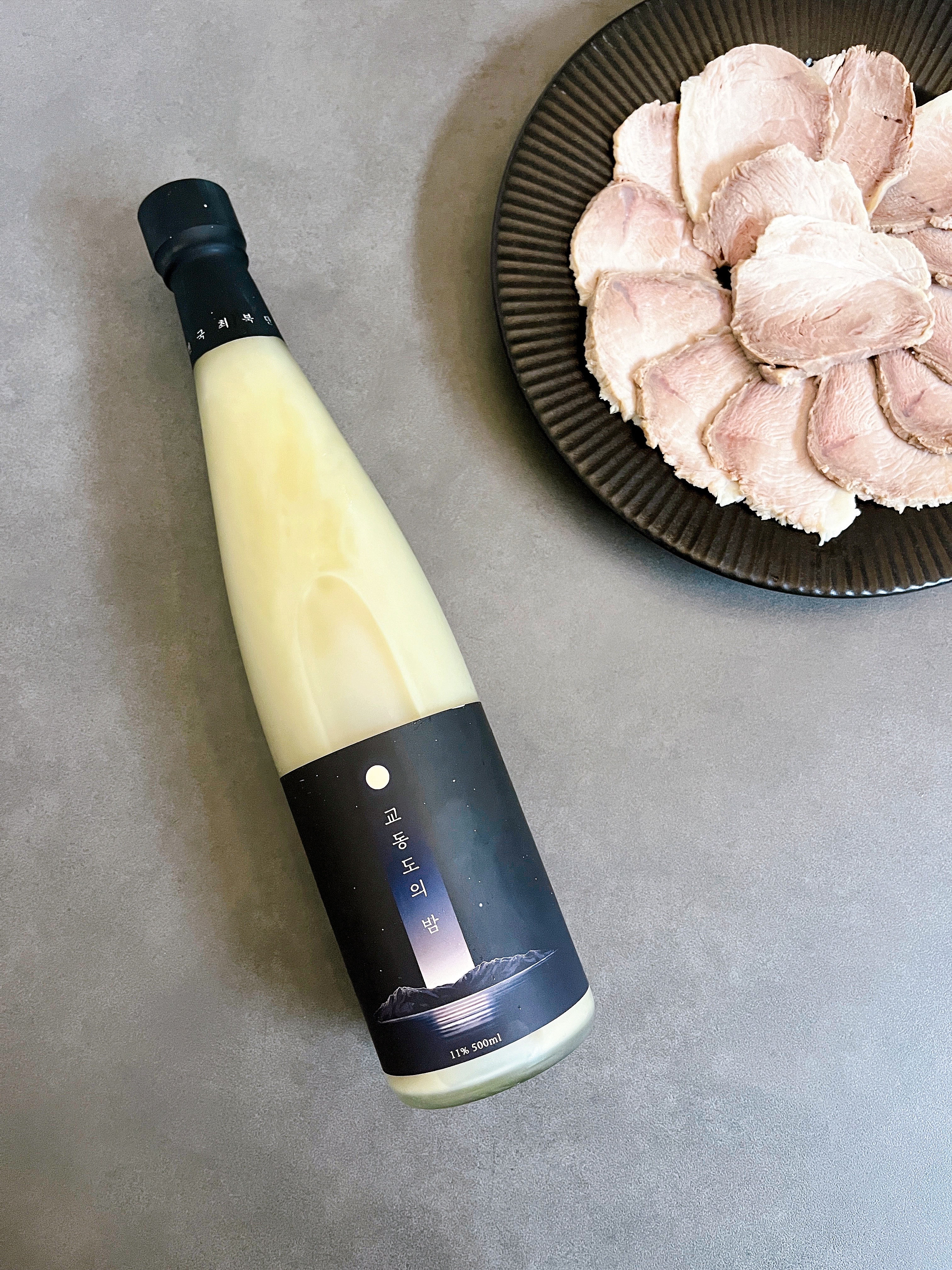 이 술은 강화도 교동도에 위치한 교동양조장에서 교동지역 청정쌀로 첨가물없이 빚은 프리미엄 막걸리입니다. 2025년 막걸리 엑스포에서 혜성처럼 등장한 술이죠.