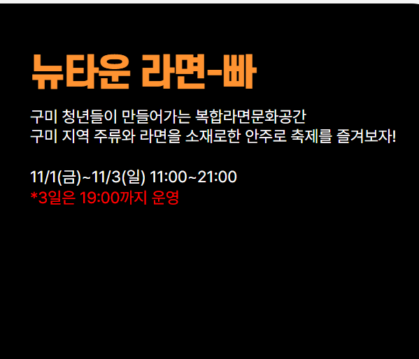 [구미 라면 축제] 세계에서 가장 긴 라면 레스토랑 티니핑 콘서트 주차 팁 주류까지 11/1(금)~3(일)