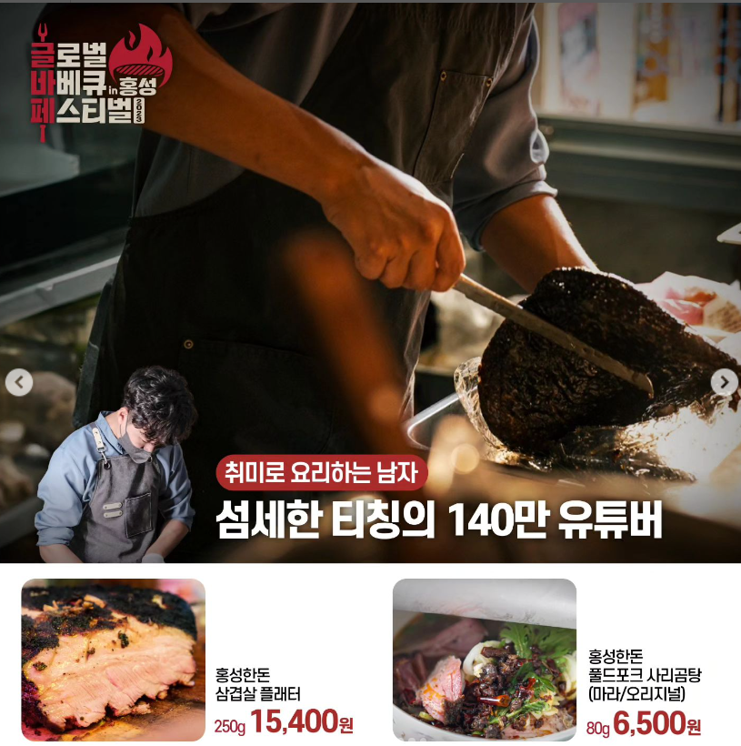 안녕하세요. 주모 로라입니다. 지난 9월 예산시장 맥주축제와 삼국축제(명주 페스타)에 이어 백종원 대표의 3번째 지역 축제인 글로벌 바베큐 페스티벌이 11월 3일부터 충청남도 홍성에서 열린다고 합니다. 더본코리아의 바베큐를 비롯하여 유명 바베큐 전문 유튜버들의 음식들로 구성된 축제라 맛은 일단 보장된 것 같은데요. 자세히 알아볼까요?