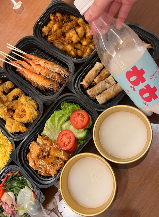 막걸리는 막걸리러버인 제가 나트랑 도착한 첫날 막걸리키트로 담가서 3일간 숙성한 생막걸리예요. 하하. 베트남 생수로 만든 세상에 하나뿐인 막걸리입니다. 생각보다 달아서 많이 마시지는 않았지만 베트남에서 생막걸리라니! 재미난 추억이 되었습니다.