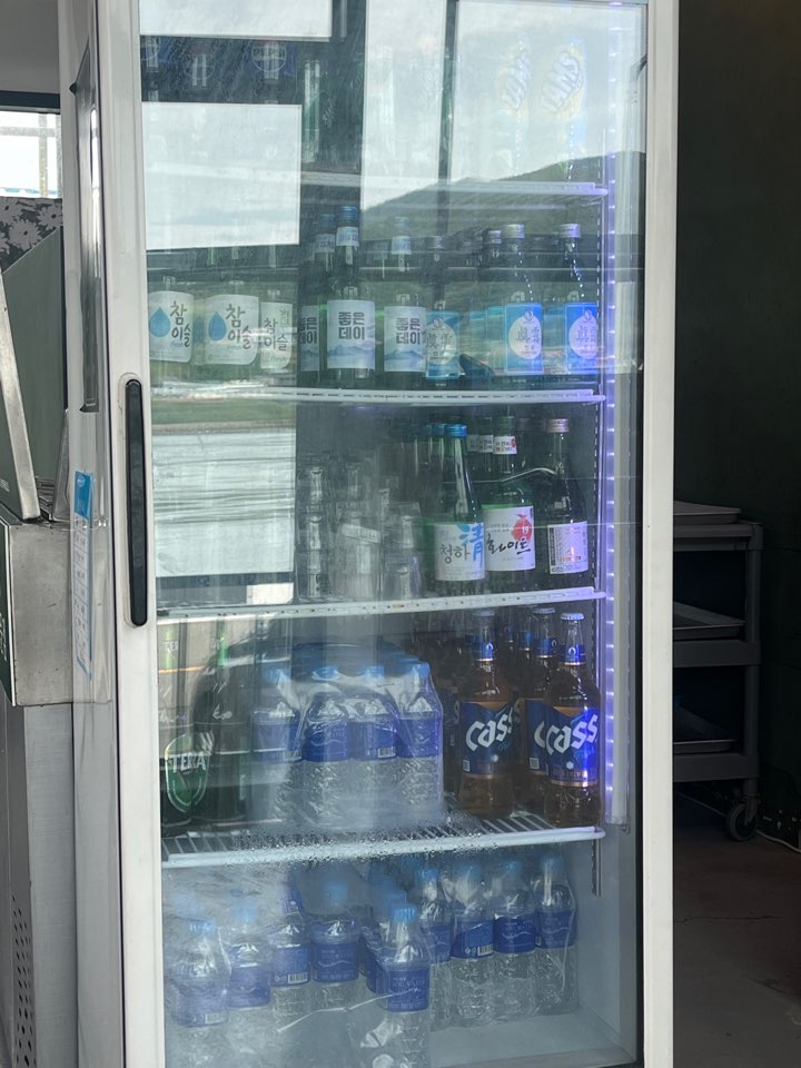 오후 3시 반까지만 운영하는 곳이지만 주류 메뉴도 있긴 있습니다. 소주는 참이슬, 진로, 좋은데이, 화이트19가 있고 맥주는 카스, 테라 두 종류가 있어요. 해물 모듬에 소주 한 잔이 하고 싶었지만 12시도 안된 시간이라 꾹 참았습니다.