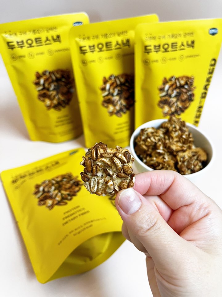 그리고 기존의 두부과자는 기름에 튀긴 것들이 많잖아요. 이 두부오트스낵은 기름기 없이 오븐에 구워 정말 담백했어요. 자극적인 과자는 먹을 때는 입이 즐겁지만 먹고 나면 속이 더부룩하고 불편한데 이 두부오트 스낵은 속이 편해서 좋았습니다.