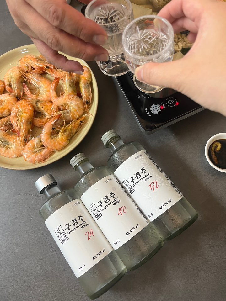 향만 맡아보면 52도가 역시 가장 훌륭합니다. 코 박고 계속 맡고 싶은 향이랄까요? 분명 투명한 술이지만 마셔보면 텍스쳐가 있는 음식처럼 밀도감이 입 안 가득 느껴집니다. 그런데 또 신기하게 목넘김은 부드러워요. 고도수 좋아하시는 분들은 정말 좋아할 맛입니다. 도수가 부담스럽다면 하이볼로 즐겨보세요!