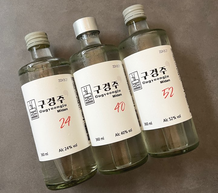 구경주는 국내 최초로 대량 재배에 성공한 경북 예천의 단수수를 원료로 사용하는 증류식 소주입니다. 단수수대를 착즙, 발효, 증류하여 첨가제없이 순수한 단수수향을 발현해낸 술이예요. 쌀이 아닌 단수수를 원료로 하였기에 정확히 말하면 '럼'이라고 볼 수 있겠어요. 도수는 세 종류, 24도, 40도, 52도가 있습니다.