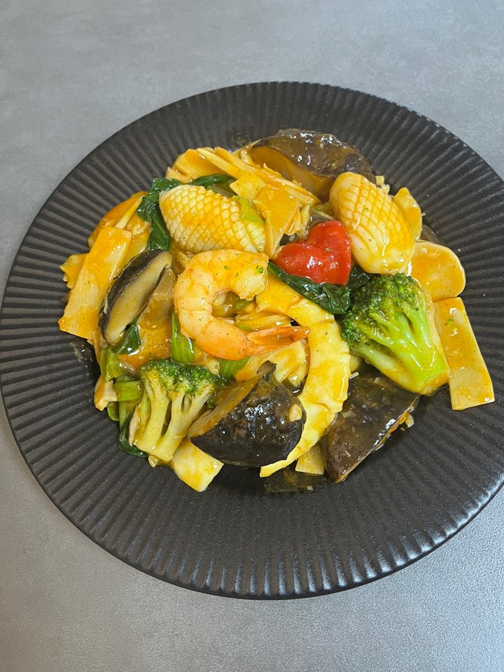 이마트에서 구매한 팔보채입니다. 조선호텔 레시피로 만든 팔보채라고 하는데 재료 하나하나가 신선하고 큼지막해서 마트 팔보채가 맞나 싶었습니다. 퀄리티가 정말 좋네요. 전자레인지에 4분 돌리고 동봉된 고추기름을 뿌려 먹으라고 되어있어요. 저는 더 맛있게 먹고 싶어서 전자렌지 대신 달궈진 팬에 살짝 볶아주었습니다. 아삭한 죽순도 정말 많이 들어있었고요. 재료가 진짜 신선해요. 이마트 가시면 꼭 사보세요. 강력 추천합니다.