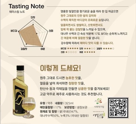 오늘은 2024 대한민국 주류대상에서 청주 약주 부문 대상을 수상한 담 the origianl 약주를 소개해 보았습니다. 저는 대밭고을 양조장의 술을 예전부터 좋아하고 즐겨 마시고 있었거든요. 그런데 이렇게 직접 신제품을 보내주시기도 하고 또한 그 술이 대상을 수상해서 제가 성공한 덕후가 된 기분이었답니다.
