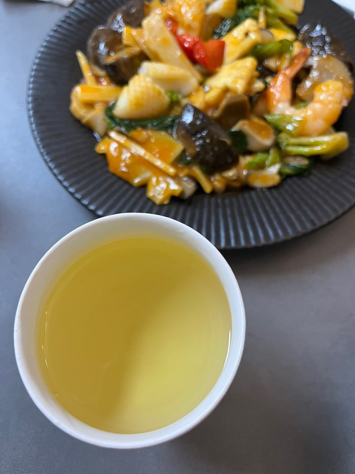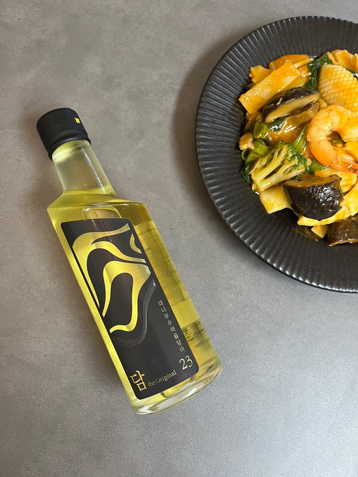 대나무 수액으로 빚은 특별한 술이고 주류대상에서 대상을 받은 술이기 때문에 안주에 조금 더 신경을 쓰게 되더라고요. 죽순이 들어간 음식이면 잘 어울릴 것 같아 팔보채와 함께 페어링해 보았습니다.