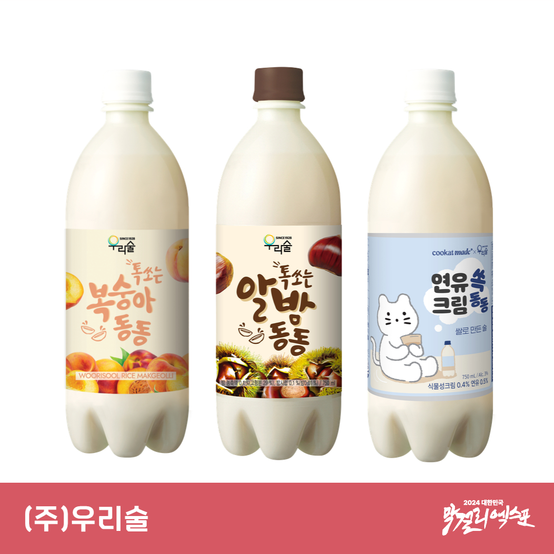 | (주)우리술 | 복숭아동동, 알밤동동, 연유쏙 크림동동 |