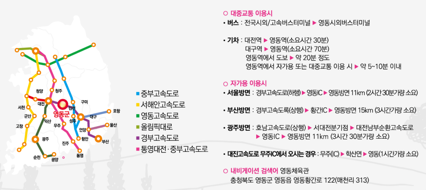 | 장소 | 영동체육관 일원 (영동 레인보우힐 관광지) |