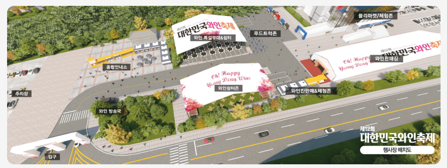 와인 특설무대와 쉼터를 중심으로 넓은 구역에서 진행되는 행사이니 안내 이미지를 참고해주세요.