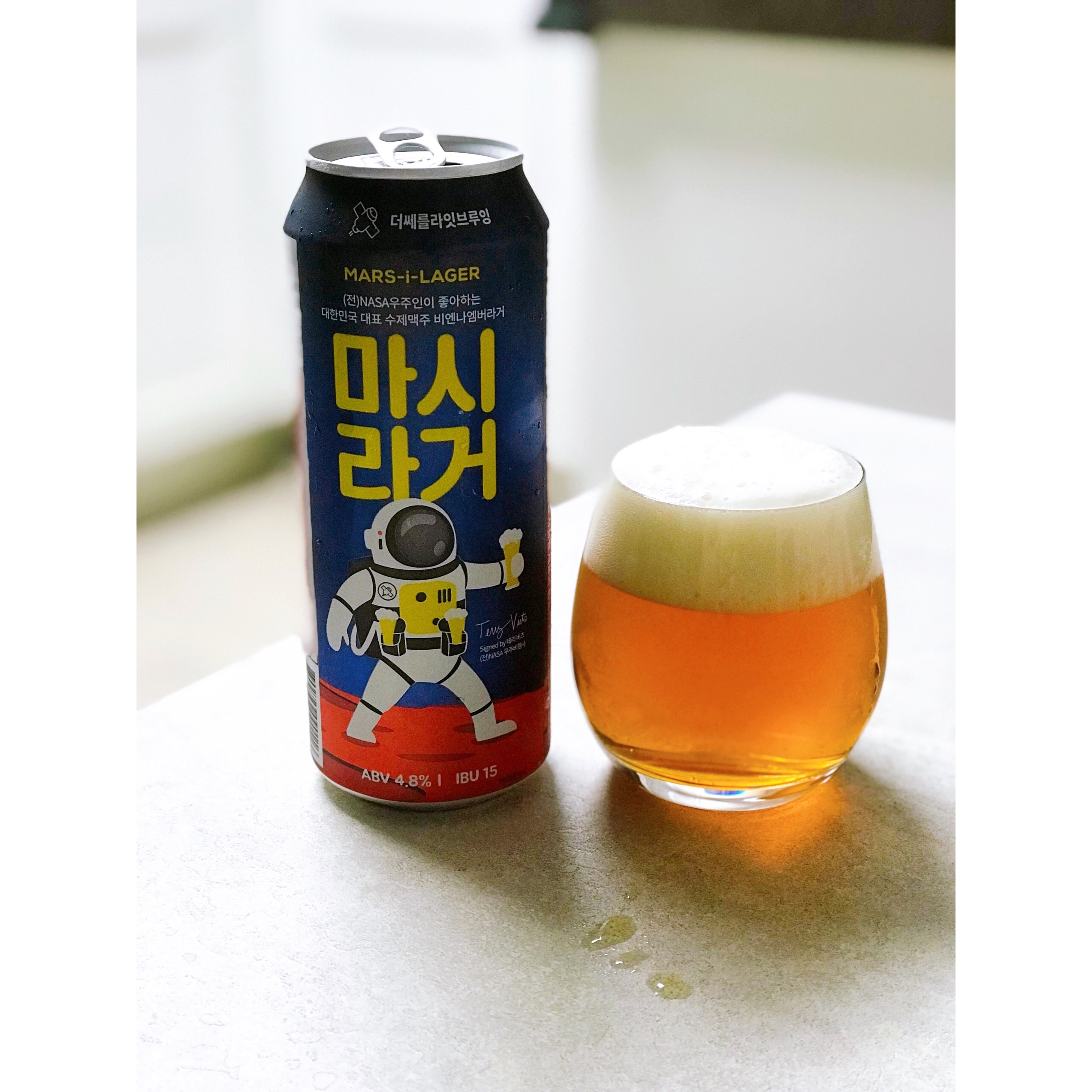 이름부터 특이한 마시라거. '마셔라!' 또는 '맛이 라거다!' 라는 이중적인 의미를 담고 있는 라거맥주입니다. 우주비행사 Terry Virrts의 자필 서명이 들어가 있고 우주복을 입은 사람이 한 손에 맥주를 들고 있는 라벨이 참 인상 깊습니다. 알아보니 마시라거는 2021년 7월에 더쎄를라잇브루잉에서 처음으로 자사 유통제품으로 출시된 맥주입니다. 알코올 함량은 4.8%이며 비엔나 엠버 라거라고 합니다.