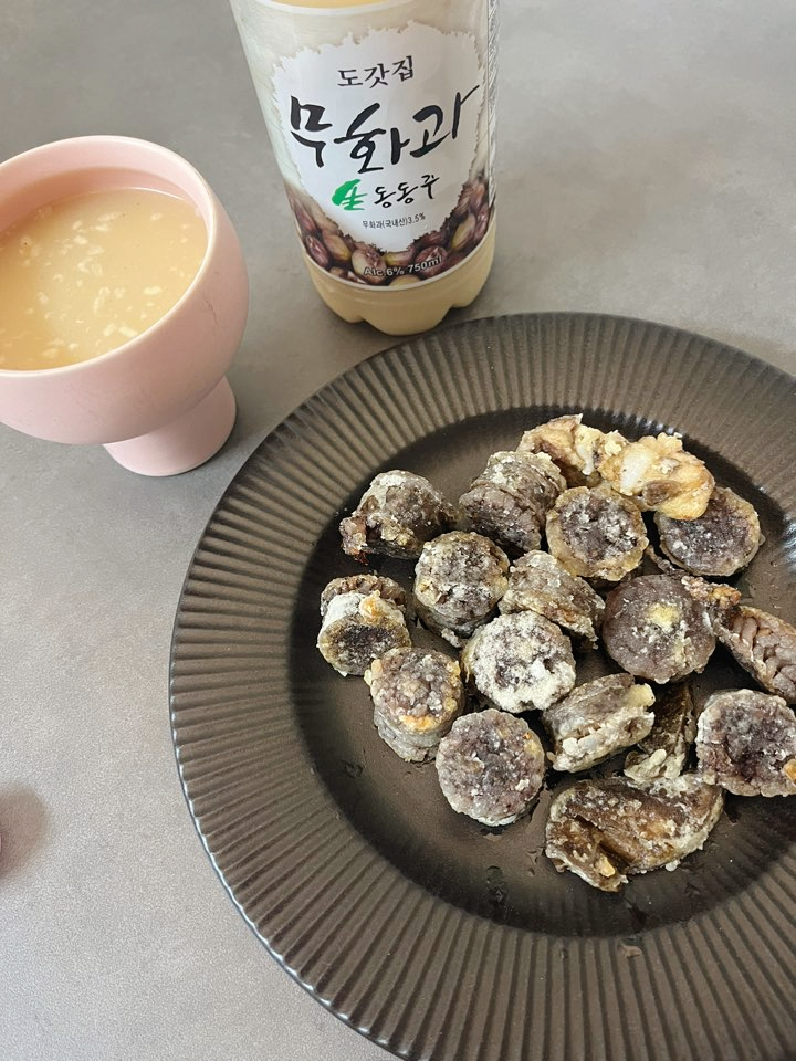 안주는 순대튀김입니다. 기름진 튀김의 맛을 쌉싸래한 무화과 동동주가 깔끔하게 씻어주네요. 정말 맛있게 완병 했습니다.