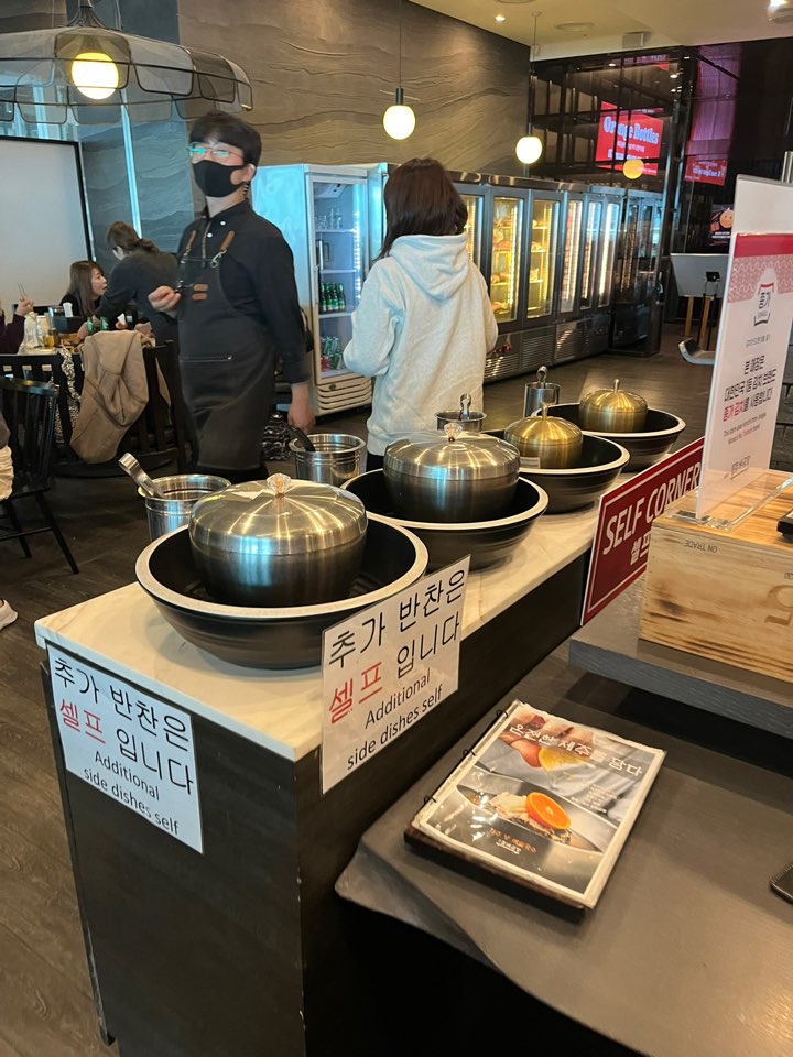 곰탕도 맛있었지만 저의 원픽은 한돈 김치찌개입니다. 오래 끓여 푹 익은 김치와 돼지고기가 깊은 맛을 내주네요. 반찬은 셀프 코너에서 원하는 만큼 추가 가능해요.