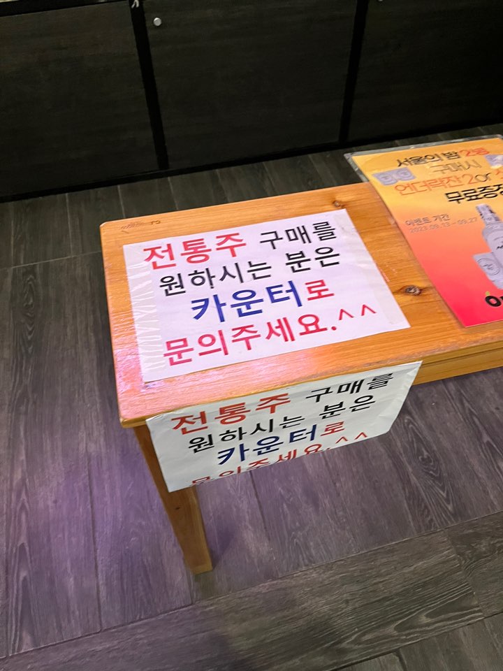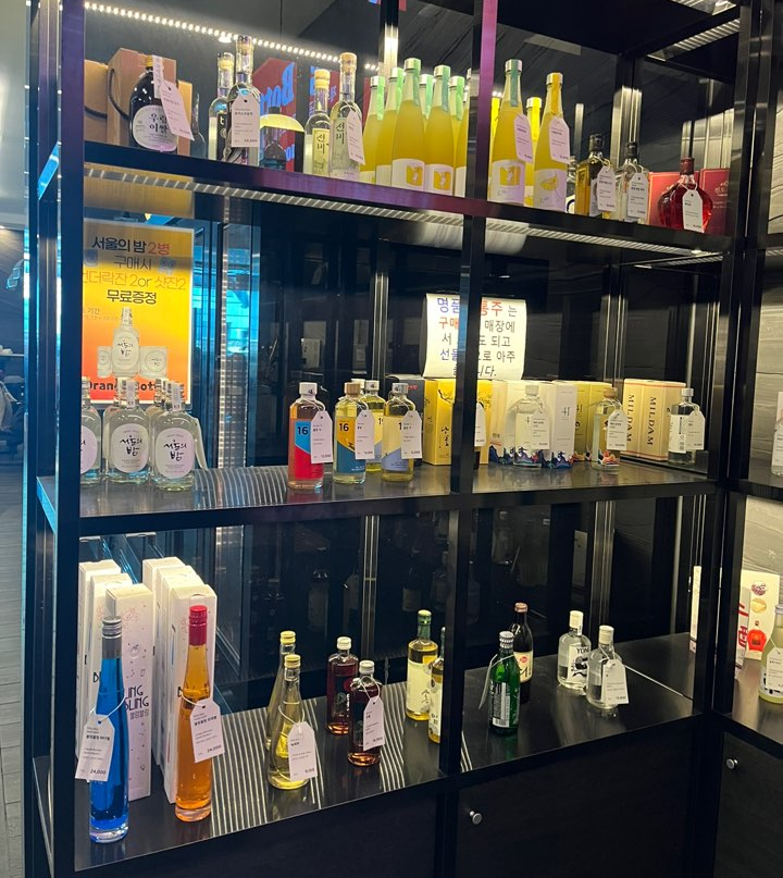 안동소주, 문배술, 이강주 등을 비롯한 다양한 증류주들이 구비되어 있어요. 유통기한이 짧고 냉장보관이 필요한 탁주(막걸리) 종류는 없네요. 출국하시면서 전통주가 필요하신 분들은 이곳에서 구매해 가시면 편리하겠어요!