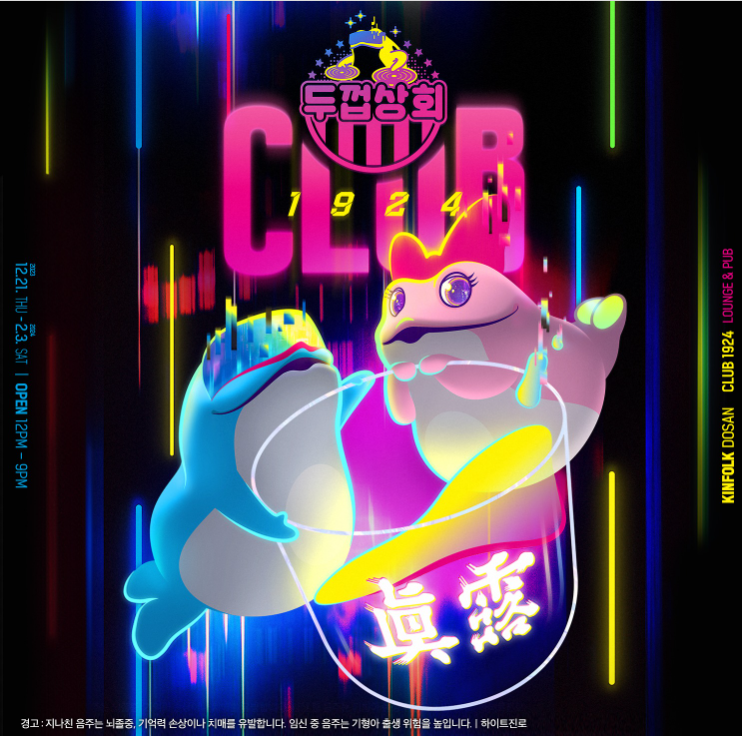 오늘은 하이트진로의 주류 팝업 행사인 두껍상회 클럽 1924를 소개해 보았습니다. 추운 겨울에 친구 혹은 연인과 따뜻한 실내 데이트 장소로 좋을 것 같네요. 내년 2월까지 진행되는 팝업이니 저도 한번 방문해 봐야겠습니다.