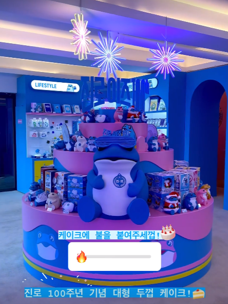 신규 굿즈 20종을 추가하여 총 220종의 굿즈를 만나볼 수 있습니다. 100주년 기념 두꺼비 케이크 진열대도 준비되어 있어요. 즐길 거리로는 에어하키, 다트, 슬롯 등이 있습니다.