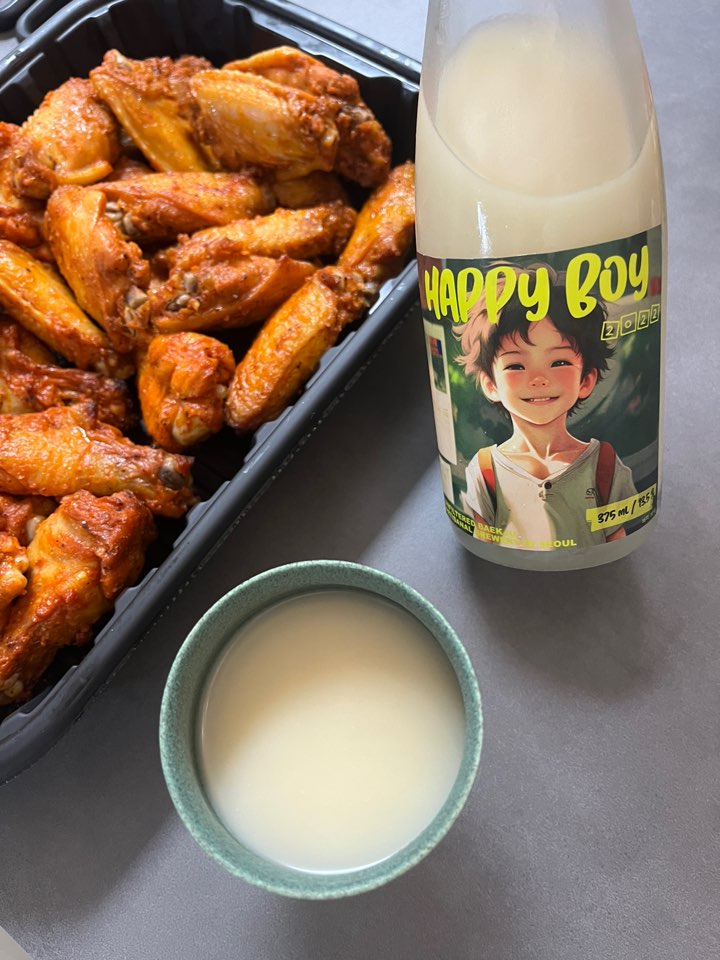 오늘은 서울 연희동의 드렁큰팩토리 양조장의 막걸리인 해피보이와 이마트 트레이더스의 버팔로윙 페어링을 소개해 보았습니다. 그럼 저는 다음에 또 유익한 전통주 이야기로 찾아올게요. 감사합니다.