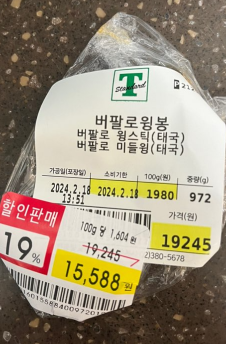 이마트 트레이더스에서 치킨러버 남편이 구매한 버팔로윙입니다. 윙은 태국산이고 970g짜리가 1만 9천원대였는데 오후 7시쯤 갔더니 19% 할인 중이어서 1만 5천원대에 구매했어요. 가격이 아주 괜찮죠? 버팔로윙이 꽤나 매콤해서 달콤하고 묵직한 해피보이랑 잘 어울렸어요.