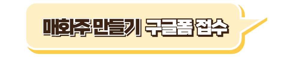 한국 가양주연구소 주최로 4월 12일(금) 11시부터 12시까지 매화주 만들기가 진행됩니다. 구글폼 접수로 신청할 수 있으며 인플루언서, 유튜버, 우리술에 관심 있는 분, 체험 후 SNS에 기재 가능한 분은 우대된다고 하네요.(40명 정원) 선정되신 분들은 4월 8일 개별 문자로 안내한다고 합니다.