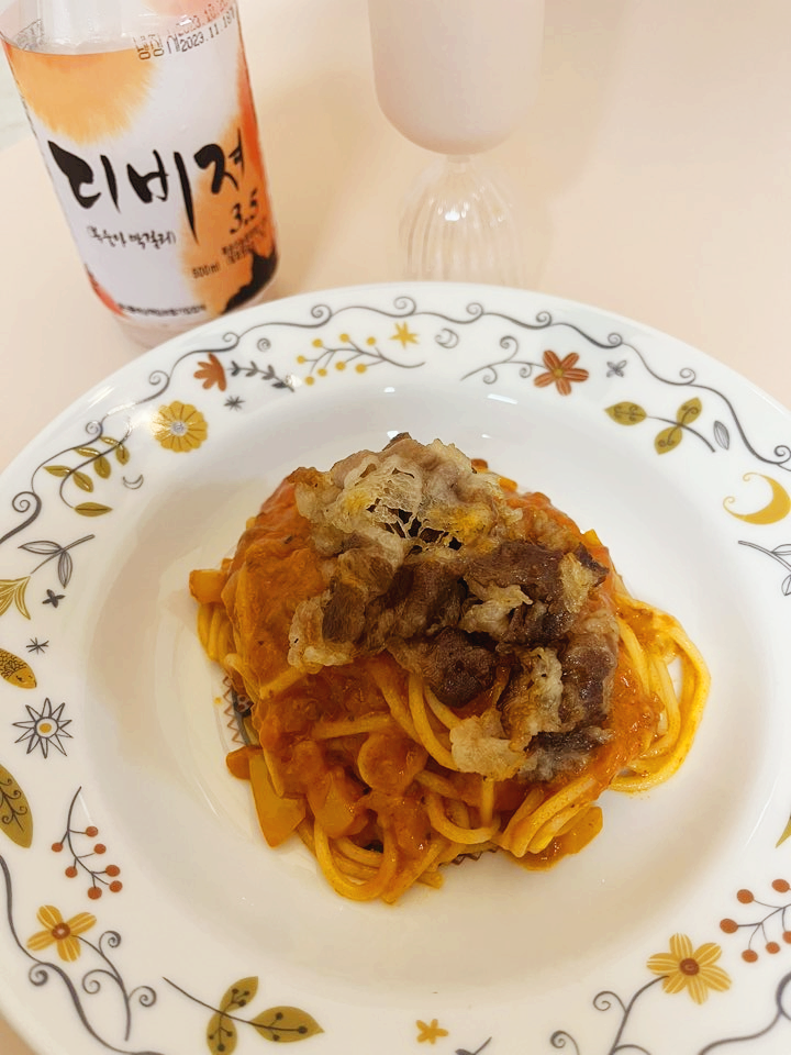 단 맛이 강해서 라구 파스타와는 그다지 잘 어울리지 않았어요. 매콤한 떡볶이나 닭볶음탕 등의 안주와 잘 어울릴 것 같습니다.