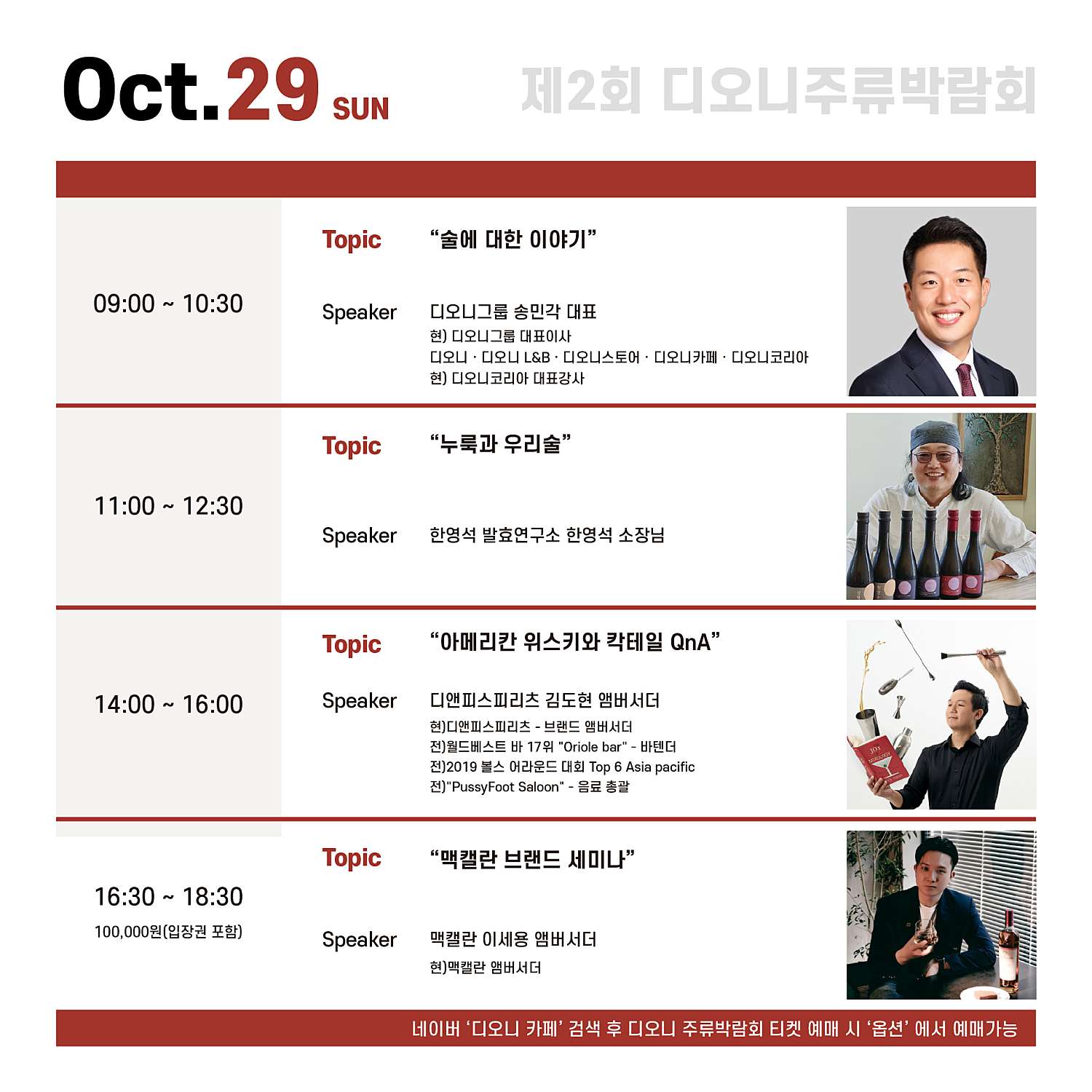 현재 28일의 경우는 발베니 브랜드 세미나만 예약 가능하며 29일은 맥켈란 브랜드 세미나와 누룩과 우리술 강의가 예약 가능합니다. 마감되면 현장에서는 예매가 불가하니 미리 사전예매 링크에서 예약하세요.