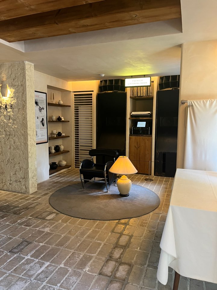 문을 열고 들어가면 보이는 테라스 풍경이에요. 대저택 마당 같은 따뜻한 느낌입니다. 테라스석이 많은데 저는 10월 초에 방문해서 따뜻했지만 겨울에는 비닐을 쳐야 할 것 같네요. 1층 내부로 들어가니 카운터가 있고 우측에는 도자기들이 전시되어 있었어요.