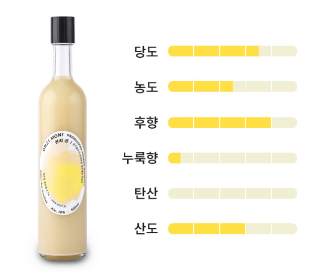 | 원재료명 | 정제수, 찹쌀(김포금쌀), 고구마, 감자, 레몬청, 누룩(밀 함유) |