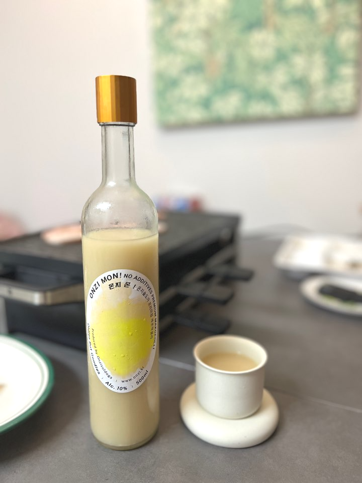 온지몬은 온지술도가에서 빚어지는 레몬 막걸리입니다. 인공적인 레몬 맛이 아니라서 참 좋아하는데요. 레몬의 산미가 느끼해진 입을 싹 씻어주는 막걸리라서 묵직한 맛의 고기 안주와 함께 페어링 하는 것을 추천합니다. 지난번에는 족발과 이번에는 라끌렛과 함께 마셔보았어요.