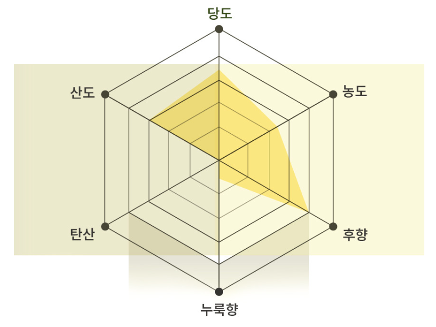 특이하게 고구마와 감자가 들어가는데요. 메인 부재료로는 제주산 레몬으로 직접 담근 레몬청이 들어간다고 합니다. 맛 그래프를 참고해주세요.