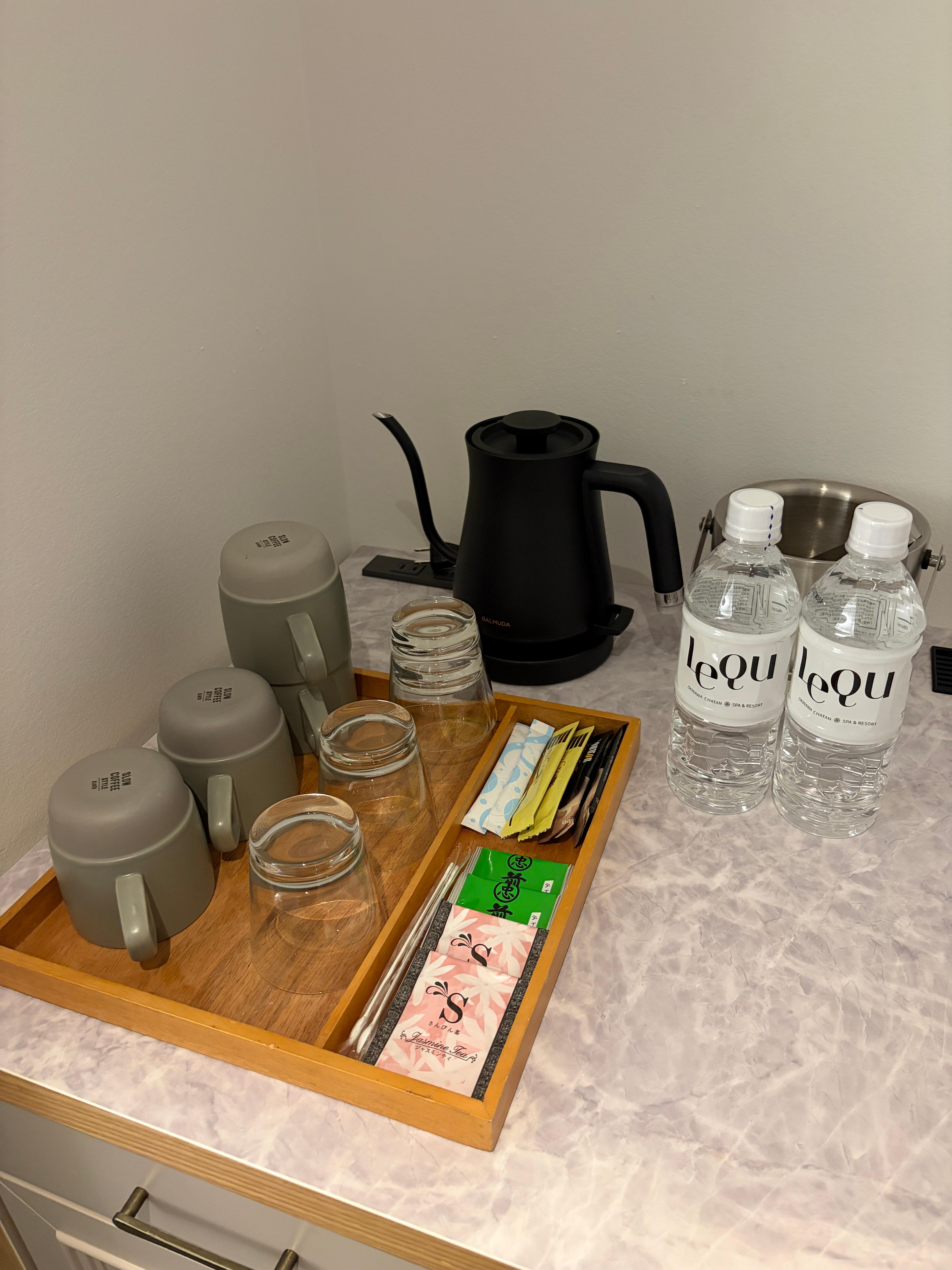 레쿠 오키나와는 웰컴 드링크 서비스를 14시부터 21시까지 제공하고 있어요. 체크인하고 난 후 어른들은 커피 한 잔, 아이들은 음료 한 잔 마시기 좋습니다.