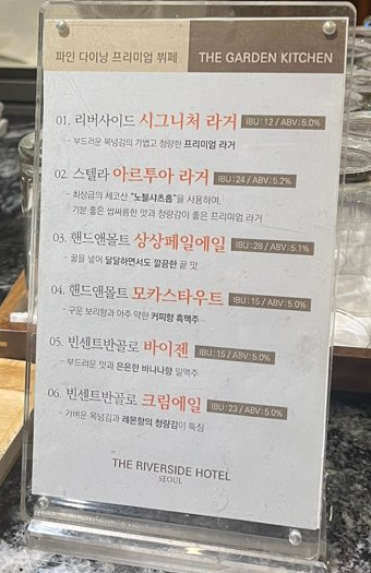 리버사이드 호텔 뷔페 더 가든 키친 와인 2종 맥주 6종 무제한 장단점 솔직 후기