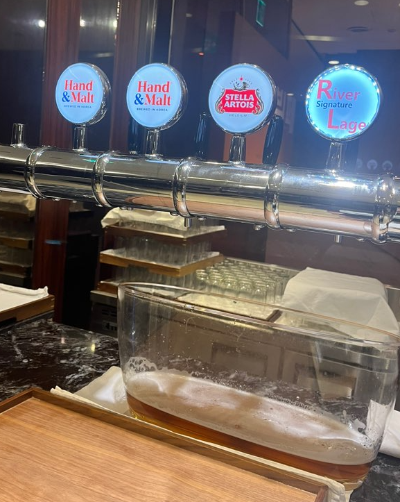 맥주는 여섯 종류가 있어요. 리버사이드 시그니처 라거, 스텔라, 상상 페일 에일, 모카 스타우트(흑맥주), 빈센트 반골로 바이젠, 빈센트 반골로 크림에일 이렇게 여섯 가지인데요. 저는 리버사이드 시그니처 라거가 제일 맛있더라고요.