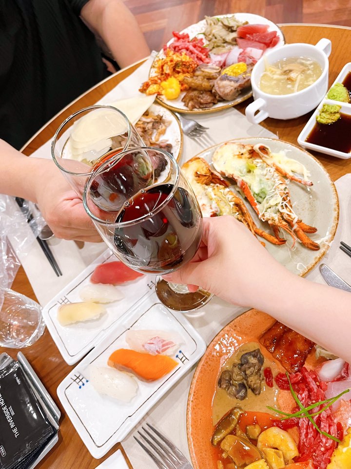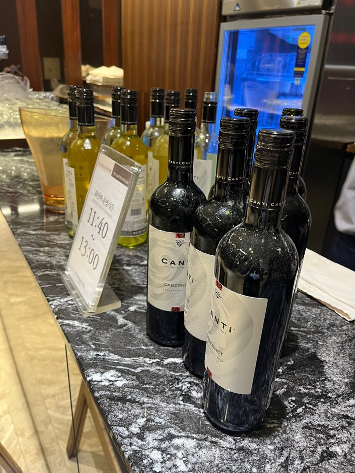 애주가 부부는 한 종류씩 다 마셔보았답니다. 기념일이라 와인으로 짠! 술 좋아하시는 분들에게는 천국일 뷔페입니다. 11시 30분 타임의 경우, 주류 제공은 13시까지이니 미리미리 받아놓으세요!