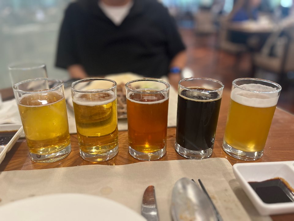 저는 주말 런치 타임에 방문했는데요. 수제 맥주 6종과 와인 2종이 제공되고 있었습니다. 입구 쪽에 위치한 비어 & 와인 바에서 원하는 주류를 말씀드리면 따라주시는 시스템입니다.