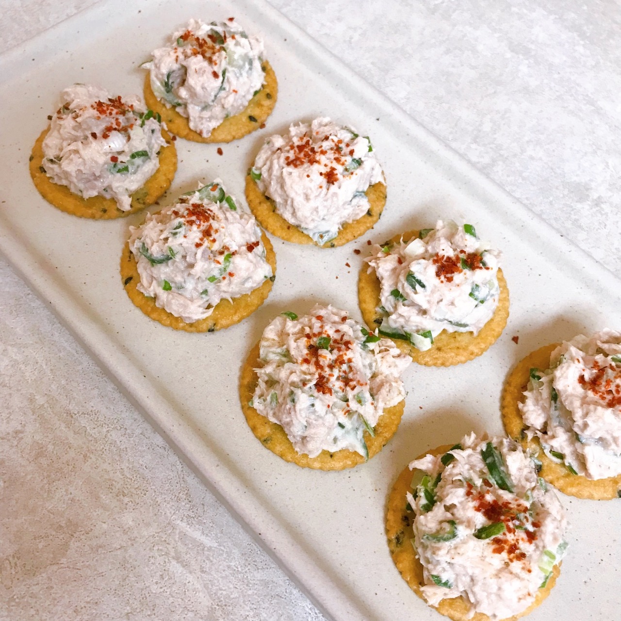 • 크래커 위에 완성된 마요네즈 참치를 적당량 올립니다.
