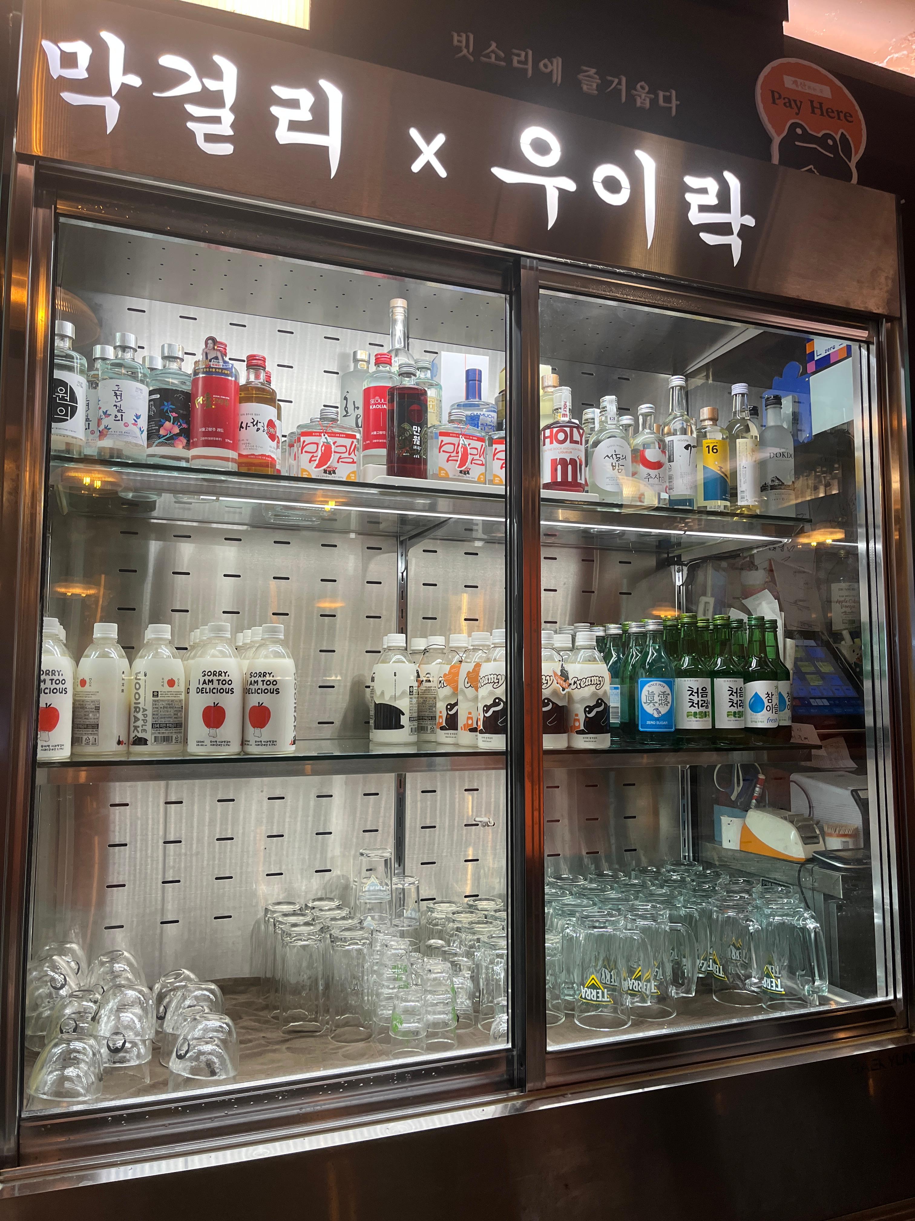 매장 바깥쪽에는 이렇게 우이락에서 판매하는 전통주들이 전시되어 있었는데요. 기다리면서 어떤 술을 먹을지 미리 골라보는 것도 좋을 것 같네요.