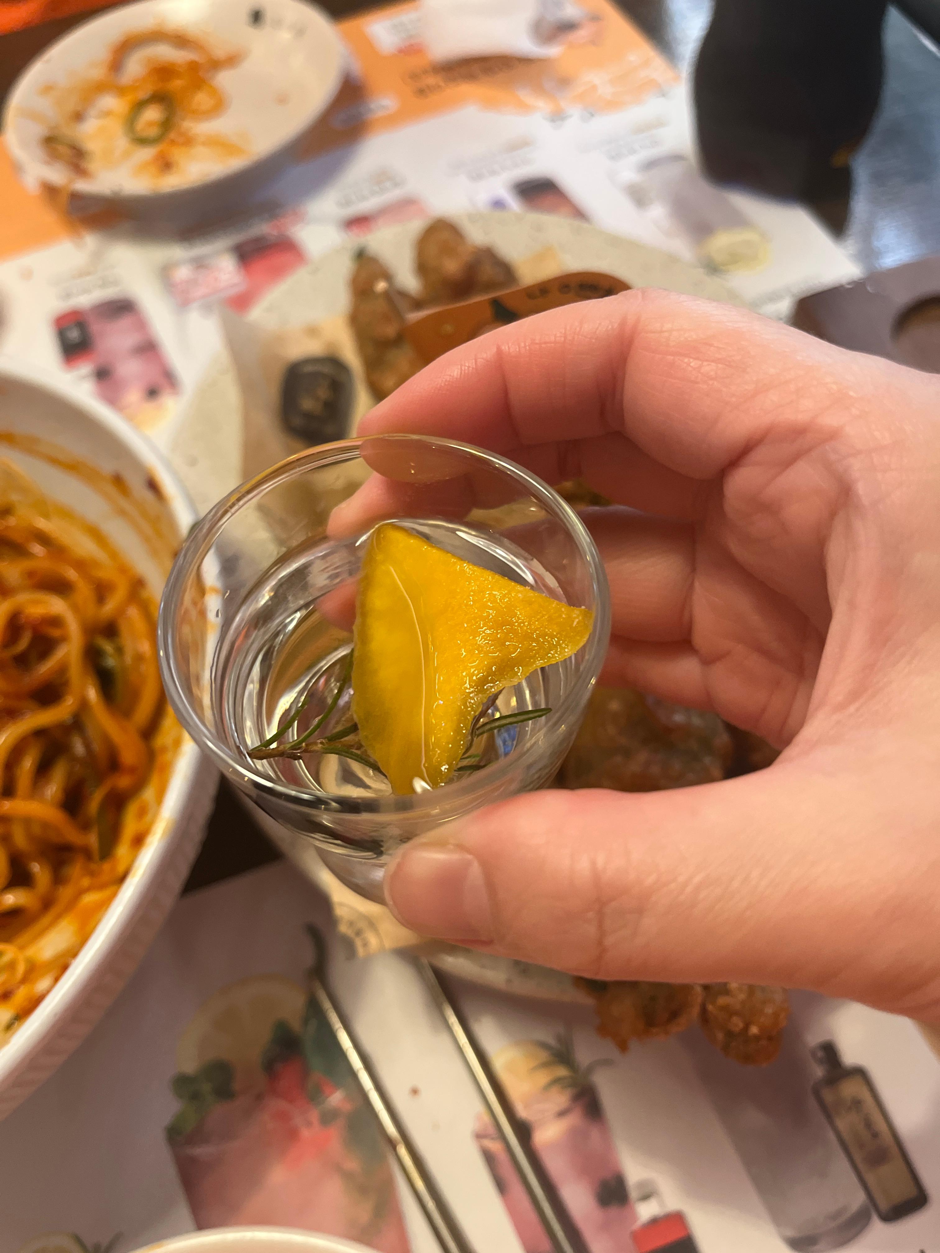 의외로 오미자 리큐르인 홀리엠이 맛있었어요. 37도라 알콜 타격감이 꽤 있지만 여러가지 음식을 먹어 복잡해진 입 안을 오미자가 리프레쉬 해주는게 아주 매력적이더라고요. 도수가 높아서 다 마시지는 못했어요.