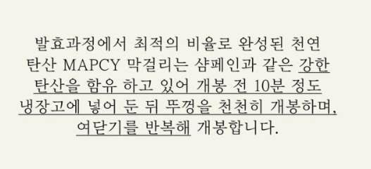 국내 최초 막걸리 명인이 유청길 명인과 미슐랭 강민철 쉐프의 합작으로 출시된 맵시막걸리(기억 브루어리)는