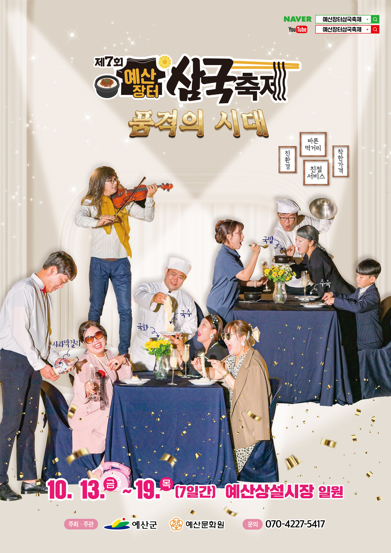예산장터 삼국축제의 삼국은 세 가지 국(국밥, 국수, 국화)을 의미합니다.